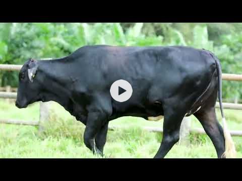 Vaca Girolando 1/2 HOL + 1/2 GIR, filha de PEAK ALTADATELINE-ET x SIENA FIV DE BRAS. (Lactação: 6.804 kg/leite). Animal com